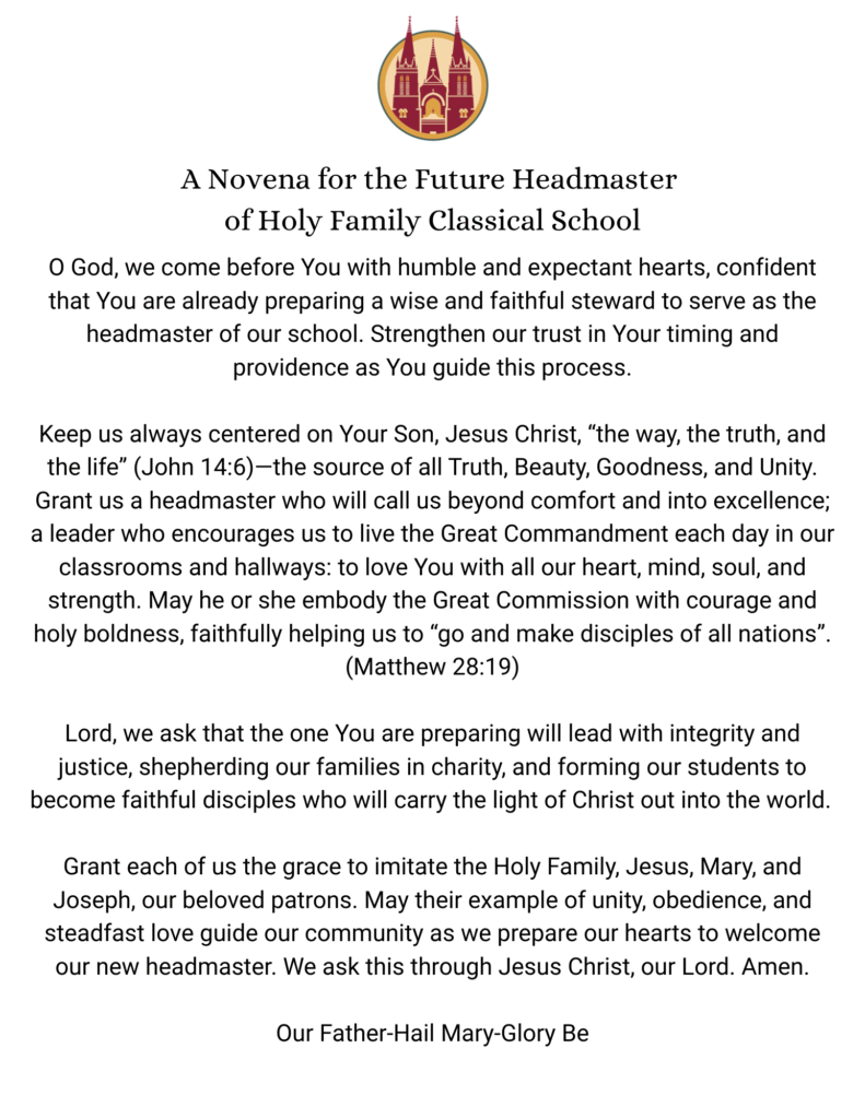Holy Family Classical School is seeking a Headmaster